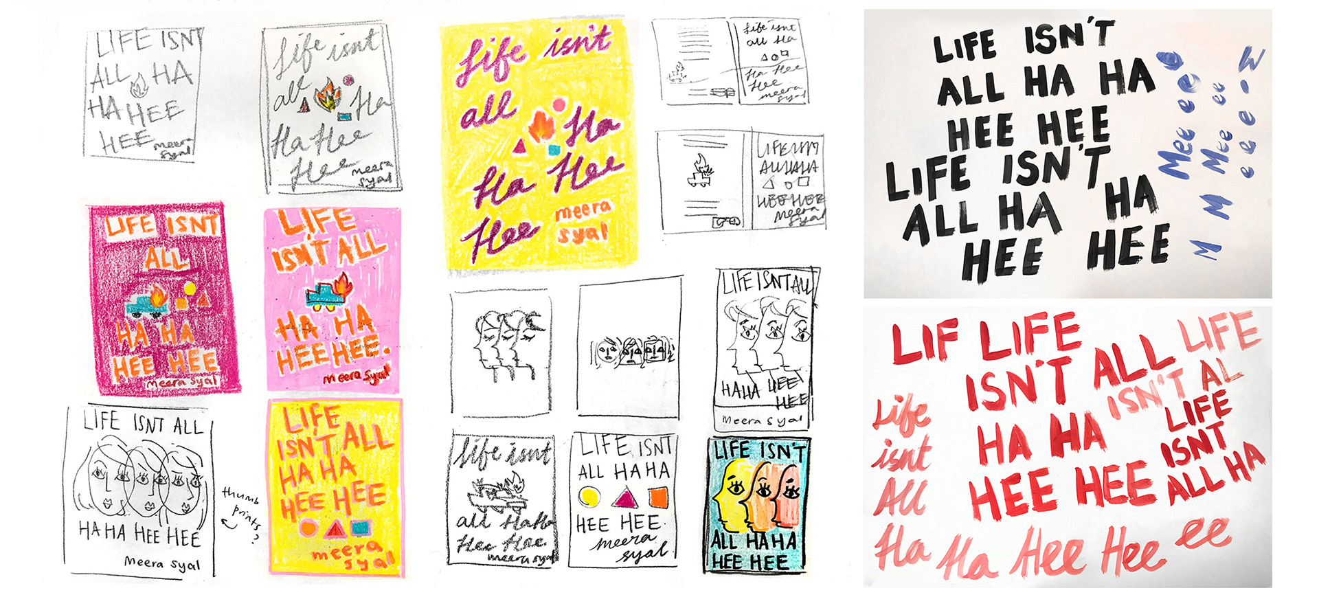 Some early sketches and loose typographic exploration to try and capture the fun comedic nature of the book.